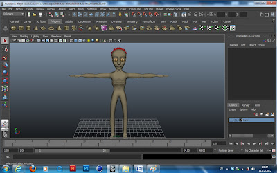 To begin, I opened up Maya and chopped up my turn around drawings to work from in a 3D space. I did this by using 2 Polygonal Planes and textured the angles, so they were to scale when the perspective views moved around the space. I then put these on another Layer and then set them to reference. Using this will guide the main shape of the character model throughout the modeling.